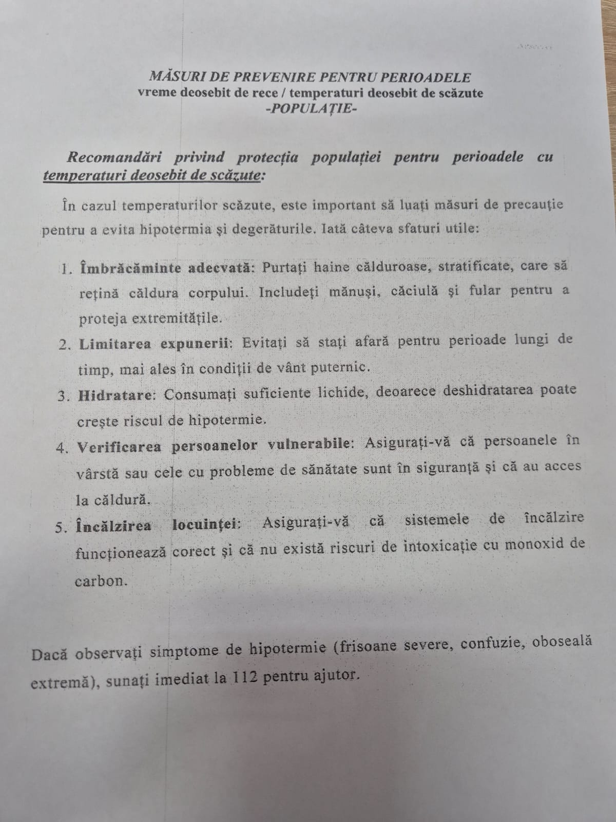 Masuri de prevenire pentru perioadele cu temperaturi deosebit de scazute!